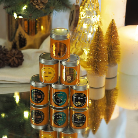 • Tea Time : thé noir semi-fermenté (Oolong), vanille, caramel,, amande et pointe discrète de cannelle