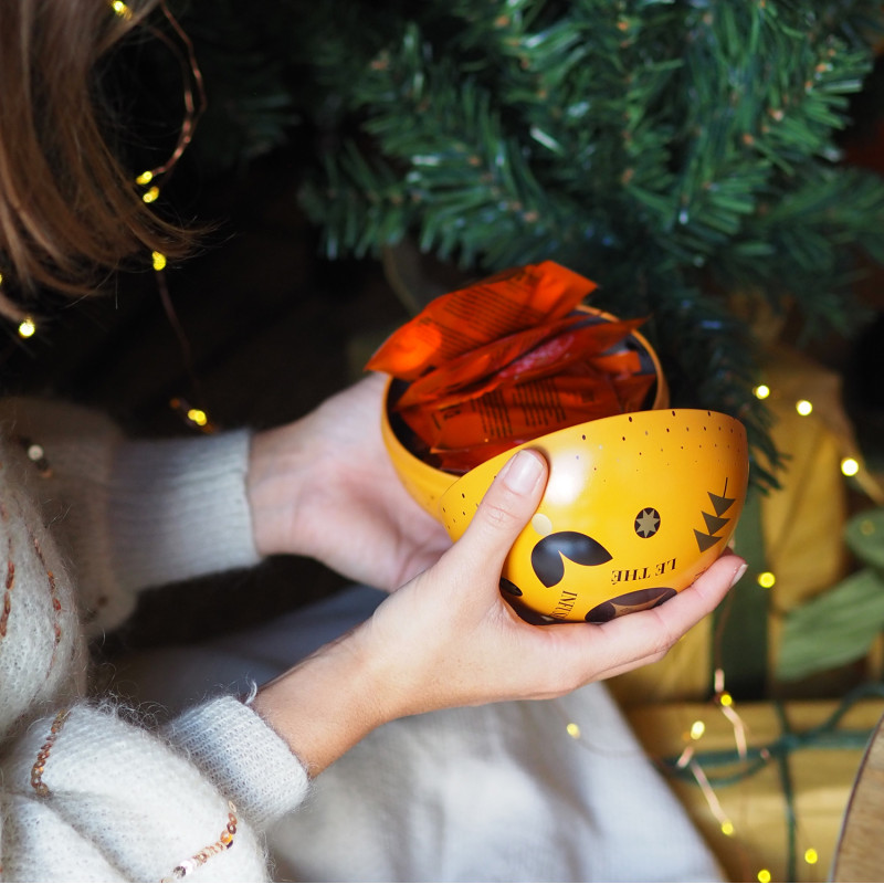 En infusant, les feuilles de thé libèrent des arômes envoûtants, tandis que des éclats de noisette et copeaux de cacao apportent pour Noël une touche de douceur et de réconfort.