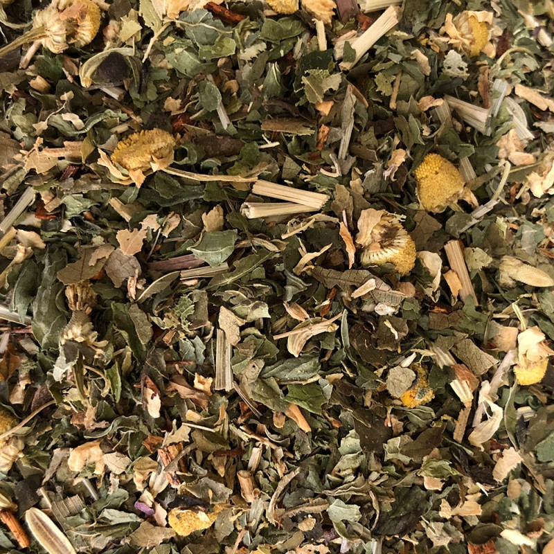 Tilleul, graine d’anis, thym, gaillet jaune, guimauve officinale, fleurs de bleuet