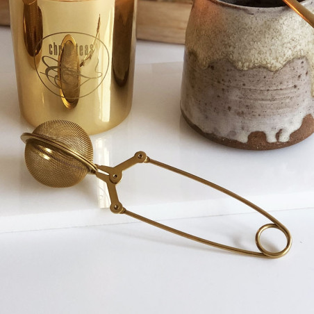Cet infuseur pince dorée permet de faire infuser son thé en vrac de manière pratique et individuelle dans une tasse.