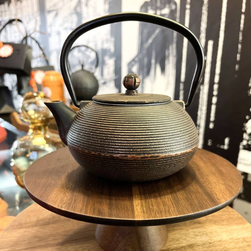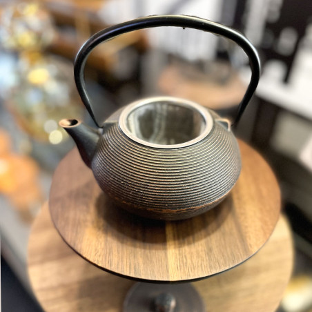 Jolie et élégante petite théière en fonte, noire et or, très chic, pour un tea time en solo ou à deux.