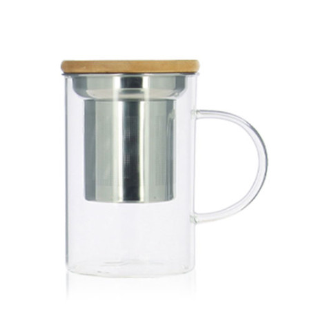 En verre borosilicate, elle possède un filtre extra-fin qui permet l'infusion de tous types de feuilles et un couvercle en bois de bambou qui garantit le maintien au chaud de votre boisson ou peut servir de repose filtre.