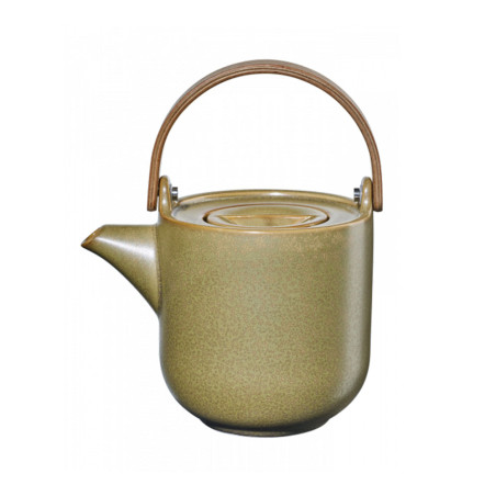 Théière en céramique à l'aspect unique. Elle dispose d'un filtre à thé grâce auquel vous pourrez déguster en toute tranquillité vos préparations. La anse en bois lui donne son élégance et rend le service du thé bien agréable.