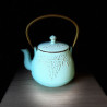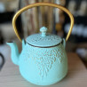 Élégante, chic et joyeuse, cette théière d’un vert céladon et anse or est une véritable merveille.