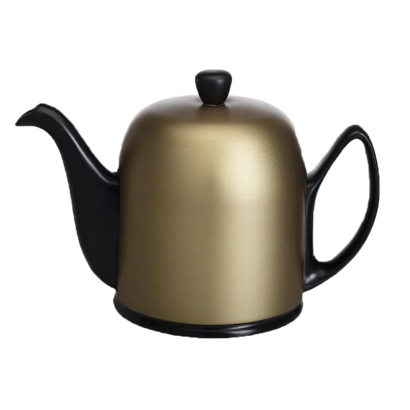Théière Salam Classique, porcelaine noire et cloche or mat brossé, avec infuseur amovible