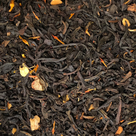 Thé noir, écorces d'orange, amandes, épices, miel, caramel, cannelle et gingembre