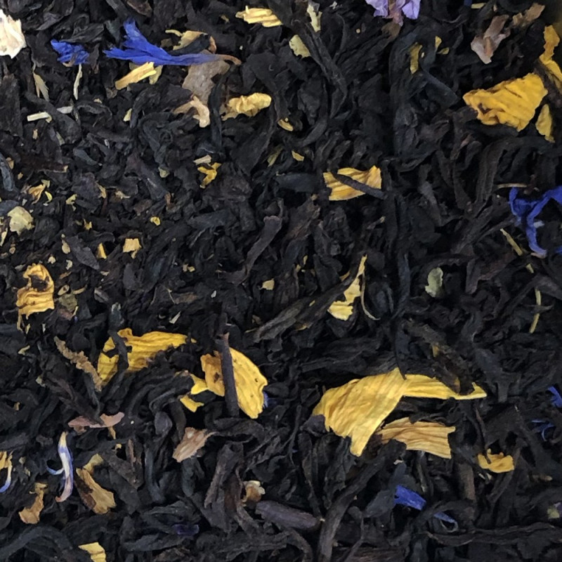 Thé noir, mangue sucrée, pétales de bleuet et fleurs de mauve