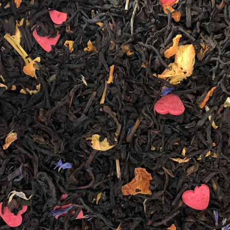 Thé noir, écorces d'orange, amandes, épices, miel, caramel, cannelle et gingembre