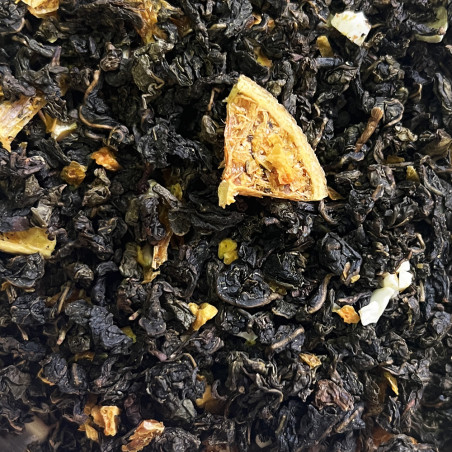 Thé vert Oolong, oranges caramélisées, éclats de meringue